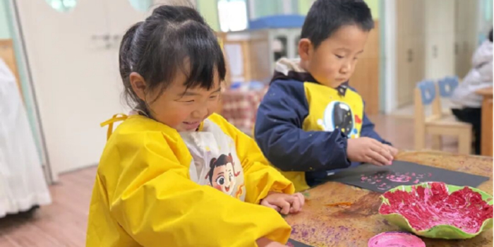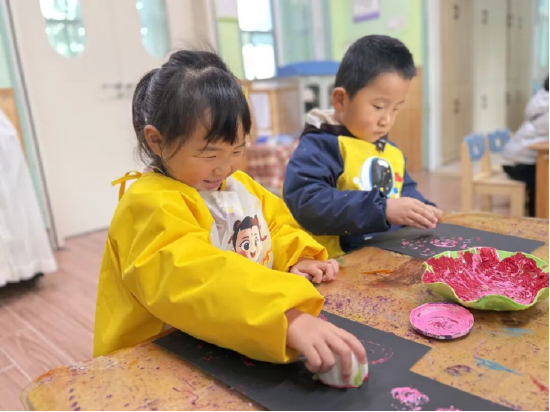 小班宝贝们以《点彩玫瑰——青菜根创意画》开启爱的创作。活动中,教师通过图片引导幼儿认识玫瑰,理解花朵承载的爱与祝福。孩子们拿起青菜根、棉签,蘸上缤纷颜料,用拓印的方式勾勒花瓣,点画花心与枝叶,再搭配亮片、丝带精心装饰,一朵朵永不凋谢的创意玫瑰跃然纸上。完成作品后,宝贝们手持画作,大声说出:“妈妈/奶奶,节日快乐,我爱你!”用稚嫩童音传递满满心意。