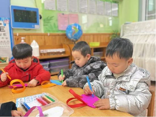 大班的孩子们用《情暖女神——自制感恩贺卡》传递深情。活动伊始,孩子们围绕“想对女神说的话”积极讨论,将心里话化作创作灵感。大家自主选择贺卡,用水彩笔、油画棒绘画,搭配贴纸装饰,在教师协助下完成剪贴与细节创作。孩子们大胆发挥想象,用一件件充满童真的作品,传递心中的美好与爱意。