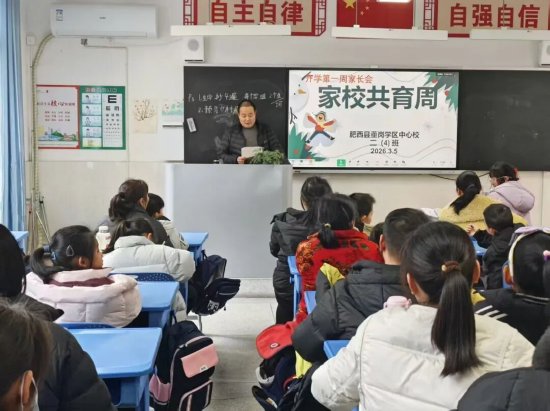 金马启新岁,家校共赴春。为进一步深化家校协同育人机制,筑牢学生身心健康防线,肥西县董岗学区中心学校于新学期开学第一周积极响应“家长共育周”号召,召开了以“家校共赴护成长,润心启程待花开”为主题的新学期家长会。本次活动旨在通过深度对话与科学指导,凝聚教育合力,让家长从“管教者”转变为孩子成长路上的“同行者”。