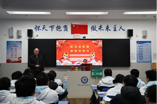 春风浩荡启新篇,博雅奋进正当时。为贯彻落实教育部和省市教育部门新春第一会的相关要求,营造浓厚的“健康第一”的开学氛围,为引导同学们以健康身心、昂扬姿态迈入高二下学期,2026年3月5日下午第四节课,合肥一中首届物理博雅班班主任郑汉洲老师在班级为同学们上了一节以“跃马启新程 健康伴我行”为主题的开学第一课,将身心健康与学业成长紧密结合,为新学期筑牢坚实根基。
