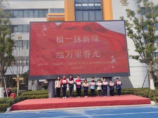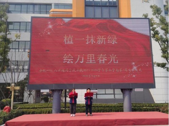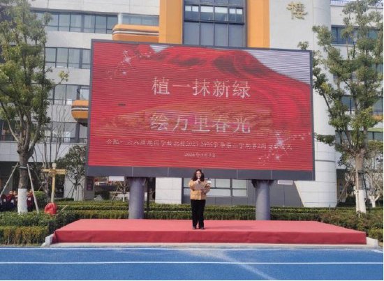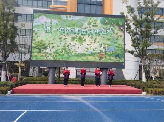国旗下,徐颖恩、时语奕、魏武煜辰、张仪四位同学进行了朗诵,他们用真挚的语言讲述植树节的深刻内涵,倡导全体同学爱护花草、守护绿色、节约资源,用实际行动践行环保理念,让生态文明的种子在心中生根发芽。