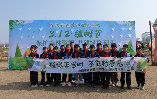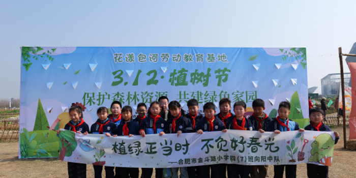 关注春风送暖,万物复苏,在第48个植树节来临之际,合肥市金斗路小学四(7)向阳中队的队员们于3月8日上午来到包河云农场,开展了“植绿正当时,不负好春光”主题植树节实践活动,让绿色理念走进每一位队员的心中,也让大家在实践中体会到守护自然的意义。