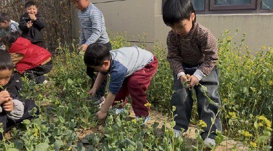 本次活动分阶段有序推进,3月10日,中班组幼儿率先行动,化身“小小园艺师”开启土地整理工作。教师现场讲解安全规范,示范拔草、整地的正确方法,孩子们分组协作,弯腰清理杂草、捡拾石子与杂物,齐心协力翻松土壤、平整土地,用稚嫩的双手为种植活动打好基础,忙碌的身影成为校园里一道灵动的风景线。