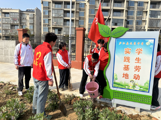 关注春风送暖,万物勃发,正是植树播绿的好时节。2026年3月12日下午,在第48个植树节到来之际,庐江县长岗初级中学校内劳动实践基地里欢声笑语、热火朝天,一场以“播撒绿色希望,收获劳动喜悦”为主题的植树节活动正在这里开展。本次活动由学校总务处与团委联合组织,旨在增强学生的环保意识,深化劳动教育实践。
