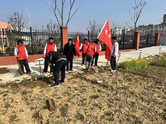 下午三时许,阳光和煦,春风轻拂。在学校总务主任陈昌列和团委书记徐玉永的带领下,由学生志愿者和部分团员学生组成的植树队伍齐聚校劳动基地。活动开始前,陈昌列主任首先向同学们强调了植树造林对于美化环境、建设生态校园的重要意义,并详细讲解了植树的要领和注意事项。“树坑要挖得深一些,土壤要踩实,水要浇透,这样才能保证树苗的成活率。”陈主任一边讲解,一边拿起铁锹为同学们做示范。随后,徐玉永书记进行动员讲话,他鼓励同学们发扬团队协作精神,在劳动中体验艰辛,在实践中感悟成长,以实际行动为建设绿色校园贡献自己的一份微薄力量。