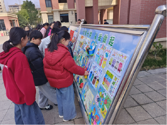 展览现场,同学们驻足欣赏、互相交流,在欣赏同伴作品的同时,进一步加深了对垃圾分类重要性的认识,也增强了主动参与垃圾分类的责任感与使命感。不少学生表示,要从自身做起,从身边小事做起,当好家庭“环保小卫士”,带动家人一起践行垃圾分类,共同守护整洁美丽的生活环境。