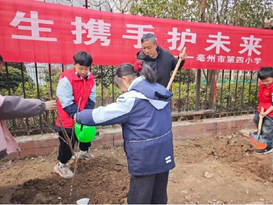 关注春风送暖,万物复苏。在第48个植树节到来之际,亳州市第四小学开展了以“家校同心植绿树,师生携手护未来”为主题的植树活动。