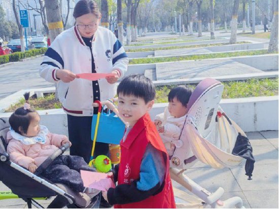 捡拾垃圾的同时,同学们还主动承担起“环保宣传员”的职责,在家长的陪同下,向广场周围的居民、沿街商铺的业主发放环保宣传单,用童真的声音向大家普及“不乱扔垃圾、做好垃圾分类、共同守护绿色家园”的环保知识。“叔叔阿姨,请看一下宣传单,我们要一起爱护环境,不乱扔垃圾哦!”一句句真诚的提醒,传递着环保的理念,也感染着身边的每一个人,不少居民和商户接过宣传单,纷纷为同学们的行为点赞,承诺会自觉践行环保行为,共同守护美丽家园。