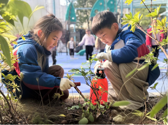 在亲身实践中,孩子们化身可爱的“小小护绿员”,手持小水壶、小铲子,兴致勃勃地为嫩绿幼苗细心浇水、轻柔施肥,用稚嫩的双手用心呵护每一株小生命,在亲身体验中感受劳动的快乐,在点滴照料中感悟生命成长的珍贵,让尊重生命、爱护自然的美好情感在孩子们心中悄悄萌芽。