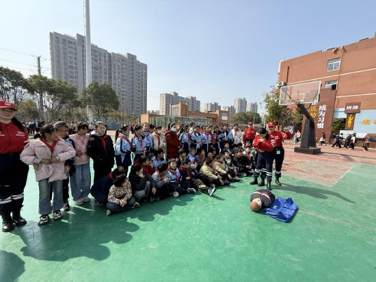 关注春风催新绿,植树正当时。为进一步增强学生的生态环保意识,同时提升孩子们的自护自救能力,肥东经济开发区中心学校联合肥东经开消防救援站、陈大郭社区、肥东阳光应急救援队等单位,共同开展“播种绿色梦想,守护美丽家园”植树节主题实践活动暨应急自救演练。