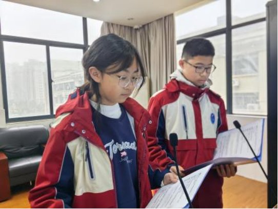 诗吟如水,润泽心田。杜欣冉和夏欣悦同学带来了集体朗诵《一滴一惜,润我校园》,她们以生动的语言、真挚的情感,描绘了水在自然界中的重要地位及不可或缺的作用,呼吁大家拧紧每一个开关,珍惜每一次用水,守护每一份清透。