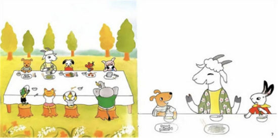 午餐时间充满了惊喜。黑猫老师宣布:“大家的饭去玩藏猫猫了!你们快去找找吧!”雪丽和乐乐在叶子下面找到了藏起来的午餐。“很好吃!”吃着“藏猫猫饭”,雪丽觉得开心极了。