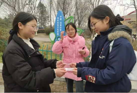 制作完成后,同学们分组行动,将满载心意的书签送给身边的朋友、老师、路人友好赠送。一句句真诚的祝福,一次次温暖的交流,同学们在主动沟通、善意传递的过程中,真切体验到奉献带来的快乐与成就感,也让文明友善的正向价值观在校园内外悄然传递。