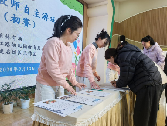 为深入践行《3-6岁儿童学习与发展指南》理念,坚持以游戏为幼儿基本活动,切实提升教师观察、解读与支持幼儿自主游戏的专业能力,2026年3月13日-17日,由合肥市庐阳区教育体育局主办,庐阳区丁婕名园长工作室、合肥市长江路幼儿园联合承办庐阳区幼儿园教师自主游戏评选活动,在长幼天成分园顺利举行。本次活动特邀专家团队担任评委,全区50名幼儿园教师代表齐聚赛场参与评比。