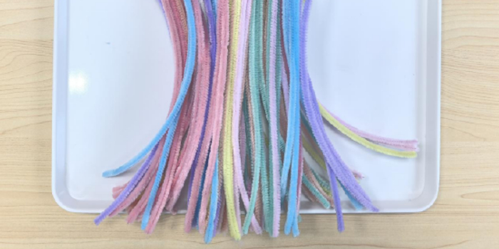 活动开始,教师出示彩色花朵手环成品,瞬间吸引了幼儿的目光。随后,教师耐心细致的讲解彩色花朵手环的制作方法:“小朋友们看!先将五根彩色毛根对齐,用拧转的方式将其均匀固定,再在尾部预留一指长度,圈绕形成小巧的花朵造型,最后轻轻调整、固定形状,一个精致的小花手环就制作完成啦”!孩子们听得认真、看得仔细,纷纷拿起自己喜欢的颜色动手尝试。