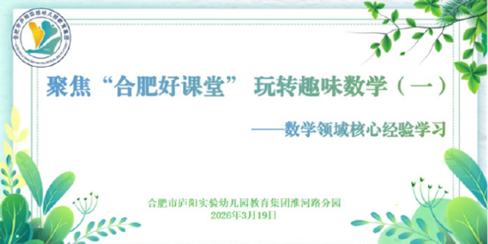 关注为深入贯彻落实2026年合肥市幼教教研工作会议精神,深化教师对幼儿数学领域核心经验的理解与实践能力,2026年3月19日,合肥市庐阳实验幼儿园教育集团淮河路分园组织开展了一场以“聚焦合肥好课堂 玩转趣味数学”为主题的数学核心经验学习教研活动。