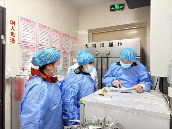 检查组一行首先走进幼儿园食堂,围绕场所卫生、设施设备、原料采购、食品储存、食材加工、餐饮具清洗消毒等食品安全关键环节进行实地查看,重点对食品留样规范、进货查验记录、食品安全管理制度落实情况进行细致核查。随后,检查组认真检查食堂食品安全监管信息公示栏,核验食品经营许可证、从业人员健康证、食品安全管理制度等公示内容,详细查看食堂日管控、周排查、月调度工作机制的落实情况,并就幼儿园从业人员食品安全培训等工作进行细致检查与询问。