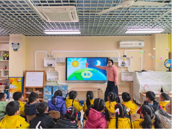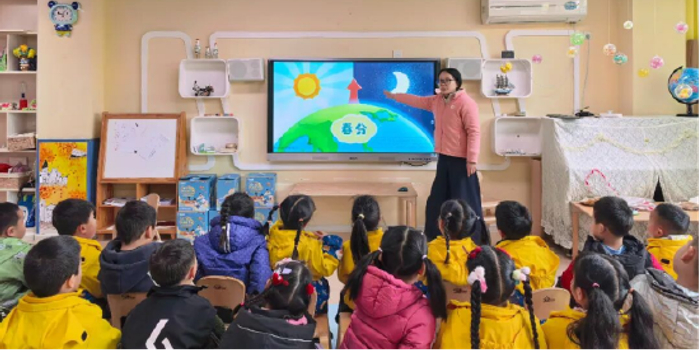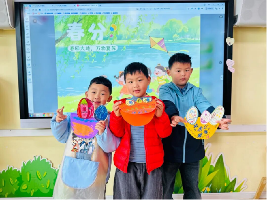 活动伊始,老师们通过生动的动画短片、精美的绘本图片和童趣的讲解,向孩子们介绍了春分“昼夜等长”的特点,展示了桃花盛开、燕子归来的春日景象,还讲述了竖蛋、放风筝、吃春菜等传统习俗。孩子们睁大好奇的眼睛,踊跃发言,对即将开始的分龄活动充满了期待。