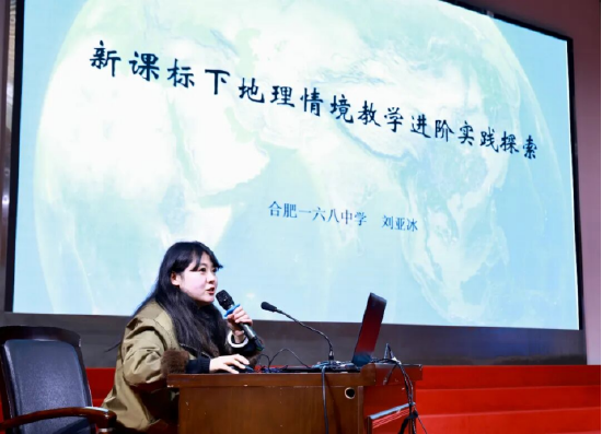 合肥一六八中学刘亚冰老师作题为《新课标下地理情境教学进阶的实践探索》的专题讲座。讲座结合一线教学实际,从情境创设的真实性、层次性及迁移性等方面,深入剖析了如何在地理课堂中实现情境教学的进阶发展,既有理论高度,又有实践深度,赢得了与会专家和教师的一致好评。刘亚冰老师的精彩分享,充分展现了我校地理教研组的教学实力与教研氛围,也为全省地理教师提供了可借鉴的实践智慧。