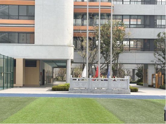 伴随着激昂的《义勇军进行曲》,五星红旗冉冉升起,全体师生肃立注目,少先队员行队礼,嘹亮的歌声在校园上空回荡。随后,校旗迎着晨光升起,校歌旋律奏响,展现了玫瑰园学子昂扬向上的精神风貌。