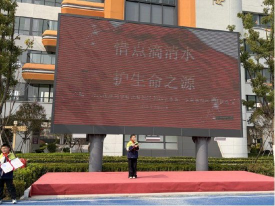 礼毕后,三(2)中队姜思竹同学发表了题为《惜点滴清水,护生命之源》的国旗下演讲。她用生动形象的比喻向同学们介绍了淡水资源的珍贵,向全体同学发出节水倡议:做节水的小能手,洗手时水流开小一点,随手关紧水龙头;做一水多用的小创意家,让洗菜水、淘米水发挥更多作用;做护水的小宣传员,带动家人和朋友共同珍惜每一滴水。真挚的语言、具体可行的倡议,引发了在场师生的深深共鸣。