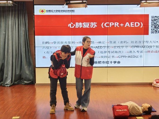 此次培训重点为心肺复苏(CPR+AED),分为理论考核+实践操作两部分。在合肥市红十字会老师专业指导下,教师分组练习胸外按压、人工呼吸以及学习实践AED的使用方法,力求每个动作精准到位。培训对老师们提出严格考核要求,不仅要在理论考核中清晰掌握急救知识要点,实践操作更要规范、熟练,只有通过双重考核,才能获得培训证书。掌握心肺复苏(CPR+AED)技能意义重大,当校园内突发心搏骤停等紧急状况,能迅速响应在第一时间展开救援,为专业医疗救援争取宝贵时间,为守护校园安全筑牢坚实防线,做到防患于未然,让应急救护成为校园安全的有力保障。