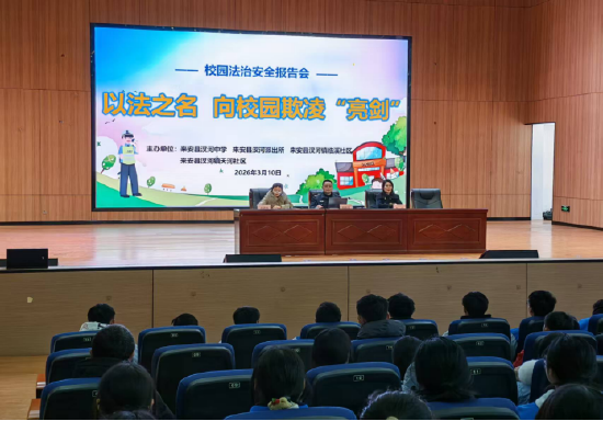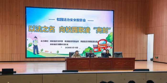 关注为筑牢校园安全防线,有效预防和遏制校园欺凌,切实保障学生身心健康与合法权益,2026年3月10日,来安县汊河中学联合汊河派出所共同开展主题为“以法之名——向校园欺凌亮剑”的法治安全专题报告会。