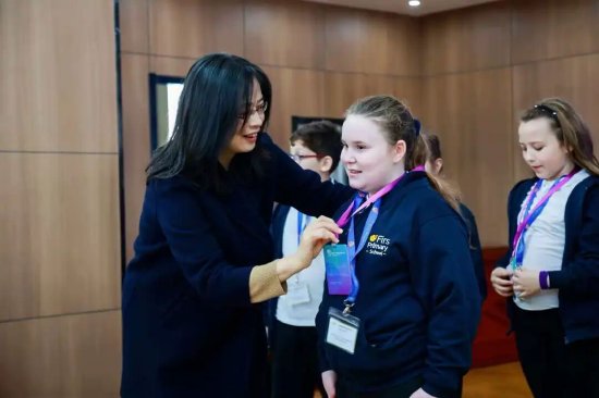 杉木小学校长Paula也深情回应,由衷感谢六小师生的暖心款待。她表示,英国教育一直注重拓宽学生文化视野,孩子们对此次中国之行期盼已久,提前了解中国传统文化及历史,共同期待通过这次交流探寻中英校园生活的异同,让两国少年成为文化交流的小使者。