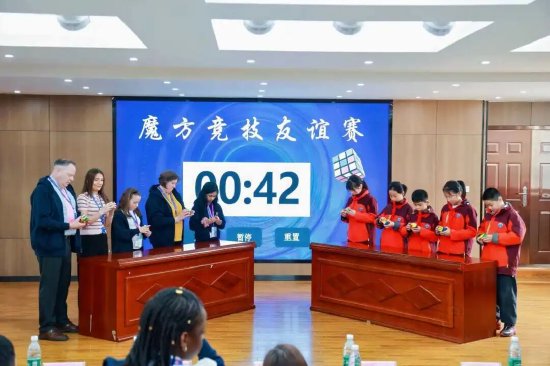 “魔方大战”将活动气氛推向了高潮,六小六年级学生代表一场“速度与激情”成功赢得来宾朋友们的称赞。“中英友谊互动赛”中,杉木小学的师生们纷纷上台,挑选自己的对抗伙伴,比的是时间,获得的是友谊,互相称赞,这不仅是文化的体现,更是文化的交融。
