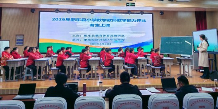 关注2026年3月24日,肥东县2026年小学数学中青年教师教学能力评比第三轮“有生上课”环节在肥东经济开发区中心学校顺利开展。本次活动聚焦中青年教师教学能力提升,汇聚县域小学数学教学骨干力量,为一线教师搭建了教学成果展示、教学经验交流的优质平台。