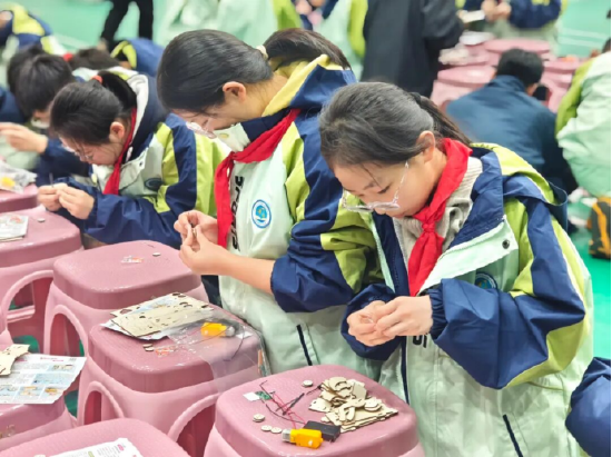 不仅如此,此次科技节期间,以“非遗中的科学”为主题的科普大篷车活动也驶入了四十六中南校的校园。一辆辆造型精致的“非遗科技大篷车”一登场,便牢牢抓住了同学们的目光。就在这方寸之间,编钟的古雅、剪纸的灵秀等传统文化瑰宝,被悄然带到孩子们眼前。