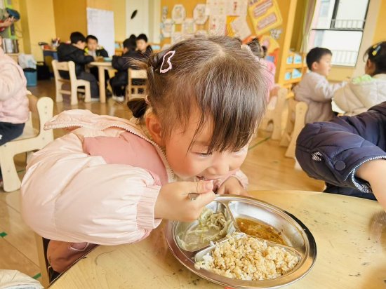 活动最后,春日的仪式感延续到了午餐时光。幼儿园的厨房里飘来阵阵清香,原来是食堂的阿姨们为全园的小朋友准备了新鲜的时令“春菜”。一道道用春天食材烹制的美味佳肴被端上餐桌。孩子们大快朵颐,品尝着大自然的馈赠。一口“春味”入喉,不仅吃进了新鲜与营养,更将整个春天的味道满满当当地留在了心间。