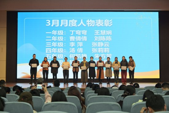 党建是学校发展的核心引领,是教师队伍建设的思想基石。会议首先聚焦党建引领与师德师风建设,学校工会副主席金云进行三月份月度人物推荐表彰,通过挖掘身边榜样、树立先进典型,进一步强化教师思想引领,筑牢育人思想根基。此次表彰充分彰显了我校教师爱岗敬业、无私奉献的职业精神,有效凝聚队伍向心力,激励全体教职工以先进为标杆,立足岗位创先争优,自觉践行育人初心使命,以过硬的师德素养扛起教育担当,为学校各项工作稳步推进筑牢思想与队伍保障。