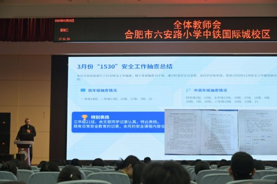 为全面落实立德树人根本任务,强化党建引领作用,规范教育教学管理,筑牢校园安全防线,3月25日,合肥市六安路小学中铁国际城校区召开2026年春学期第二次全体教师会。本次会议以“党建引领、教学深耕、平安护航”为核心框架,统筹部署学校各项工作,凝聚全员育人合力,为新学期教育事业高质量发展锚定方向、夯实根基。