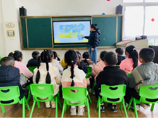 活动伊始,教师将课堂作为探索的起点。通过生动的图片和有趣的视频,向孩子们介绍了油菜花的外形特征:金黄色的花瓣、十字形的排列、翠绿的茎和叶。孩子们听得津津有味,对即将要描绘的对象充满了好奇与期待,为接下来的实地观察与艺术创作做好了充分的铺垫。