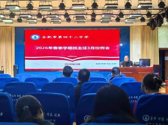 关注3月25日下午,合肥市第四十二中学组织召开三月份班主任工作例会。本次会议聚焦班级日常管理、育人经验分享及校园安全等重点工作,旨在通过交流互鉴与工作部署,进一步提升班主任队伍的专业素养与管理效能。校党总支书记、集团总校长戴鹏程,校长周艳艳,副校长罗勇、王孝和及全体班主任出席会议,会议由副校长李坤主持。
