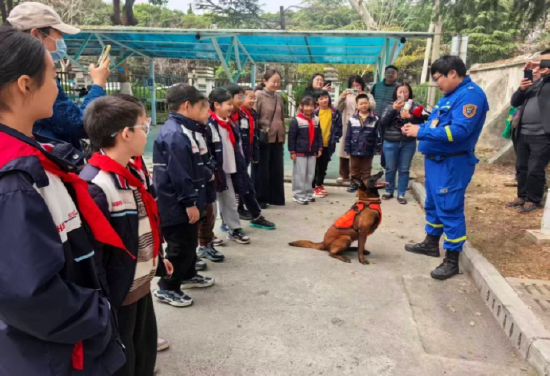 看着搜救犬专注工作的模样,队员们发出阵阵惊叹。大家了解到,这些“无言的英雄”和训导员一起,在废墟、山野中寻找生命的痕迹,是救援队伍中不可或缺的伙伴,也让孩子们对“团队协作”和“专业坚守”有了更直观的理解。