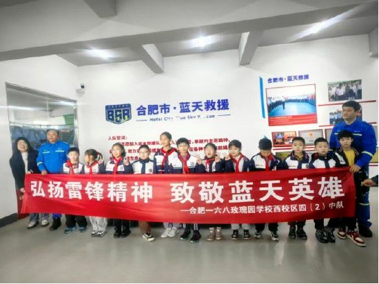 关注三月春风暖,雷锋精神传。2026年3月22日上午,合肥一六八玫瑰园学校四(2)中队的少先队员们,走进了合肥市蓝天救援队,开展“弘扬雷锋精神 致敬蓝天英雄”主题实践活动,在沉浸式体验中感悟奉献担当,在实践课堂里学习安全本领。