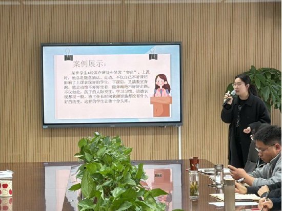 书香润心,管理启思。 石旦老师率先带来读书分享。她结合自身阅读感悟,将书中的教育理论与日常班级管理实践巧妙融合,生动阐述了如何通过阅读丰盈内心、革新理念,为班级管理注入新的活力,引发了老师们对“以学促教”的深刻思考。