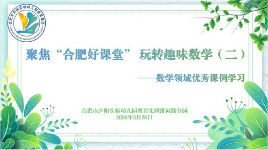 为深入践行“合肥好课堂”建设要求,聚焦幼儿数学核心经验与思维启蒙,提升教师数学领域教学实践能力。2026年3月26日,合肥市庐阳实验幼儿园教育集团淮河路园开展了“聚焦合肥好课堂 玩转趣味数学(二)——数学领域优秀课例学习”教研活动。