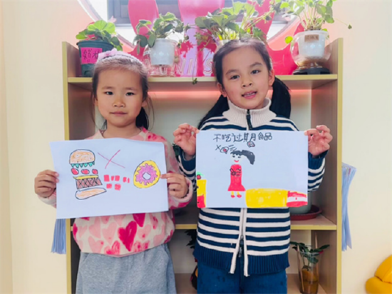 大班孩子们化身小小创作者,绘制“拒绝三无食品”“健康饮食我最棒”主题绘画,用五彩画笔描绘心中的健康饮食理念;同时开展“小小安全宣讲员”活动,鼓励幼儿大胆向同伴分享学到的饮食安全知识,让食品安全理念融入幼儿的一日生活中。