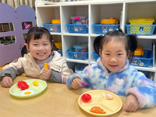 中班教师带领幼儿认识蔬果、奶及奶制品、全谷、大豆类、鱼禽蛋瘦肉类等各类食物,帮助幼儿理解“多吃蔬果谷物、适量吃肉、清淡饮食、不挑食偏食、一日三餐按时吃”的健康饮食原则,学会合理搭配食物,科学膳食,为身体提供丰富的营养。