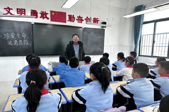 张警官首先通过生动有趣的讲解,向学生们普及了如何安全过马路、认识交通信号灯与标志标线等交通基础常识。他特别提醒同学们,红灯停,绿灯行,黄灯亮了等一等;过马路要走斑马线,并注意观察来往车辆。同时,他还强调了乘坐电动车、摩托车必须佩戴安全头盔的重要性,并倡议学生们“小手拉大手”,将学到的知识带回家,提醒和监督家人遵守交通规则。