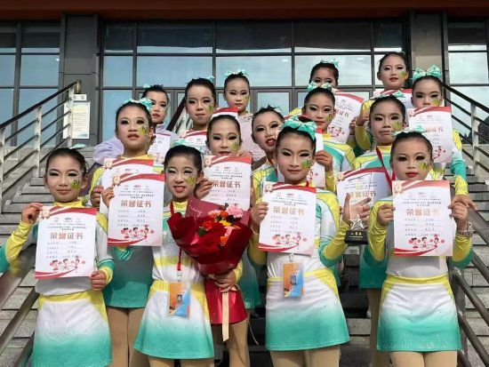 赛场上,队员们身着亮眼队服,以活力四射的表演赢得评委与观众的阵阵掌声。这份荣誉的背后,离不开集团领导的高度重视与全力支持,更凝聚着教练梁郡郡老师的悉心指导与队员们的不懈坚持。训练期间,孩子们克服困难、刻苦练习,在一次次重复与打磨中提升技艺。