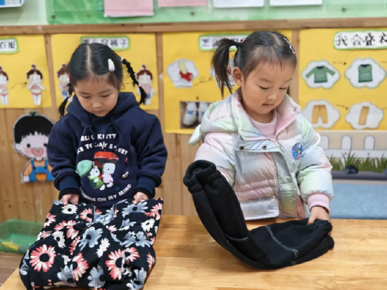 在整理小能手活动里,孩子们在实操与游戏中学会收纳整理、穿脱衣物,养成自我服务的意识。