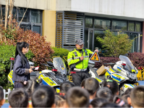在孩子们好奇又兴奋的目光中,范宏伟警官为孩子们系统讲解交通安全知识。他先巩固了信号灯通行规则,再重点讲解马路上行走、外出乘车的注意事项,细致科普车辆盲区的危险性,叮嘱孩子们无论步行还是乘车,都要时刻牢记安全守则,紧跟家长和老师,不随意横穿马路、不攀爬护栏。同时他还向孩子们展示了铁骑装备,讲解铁骑执勤的工作内容,让孩子们直观感受交通执法工作的意义,懂得遵守交通规则的重要性。
