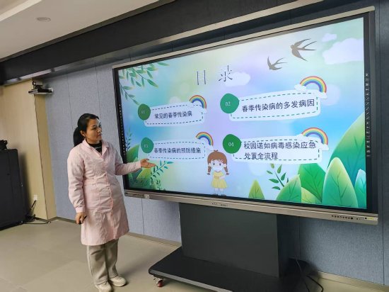 春日渐暖,万物生长,春天也是传染性疾病多发的季节。为切实保障全体师幼的身体健康与生命安全,有效预防春季传染病的发生,2026年3月23日,合肥市安庆路幼儿园教育集团迎松路分园开展教职工春季传染病防控知识培训与幼儿春季传染病健康教育活动。
