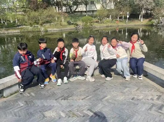 走进科大校园,绿意盎然,书香弥漫,少先队员们循着美景来到镜湖畔。湖水清澈如镜,倒映着蓝天绿树、亭台楼宇,微风拂过,湖面泛起层层涟漪,宛如一幅灵动的水墨画卷。湖边草木葱茏,书香伴着花香,孩子们驻足观赏,轻声交谈,感受着高等学府独有的静谧与雅致。在这方清幽的湖畔,大家放慢脚步,用心聆听校园里的书香韵律,打卡留念,将这份诗意与美好定格,也在心底埋下了热爱自然、静心求学的种子。