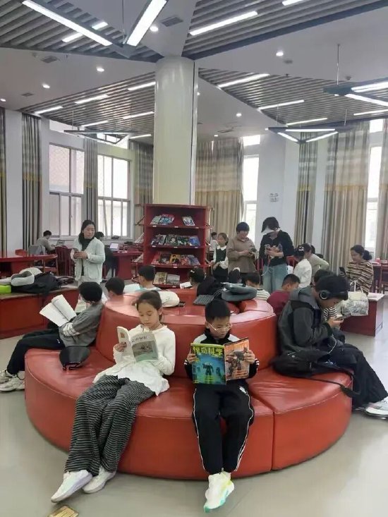 同学们满怀敬畏与期待,步入西校区图书馆。这里静谧庄严,高大的书架整齐排列,万卷藏书散发着淡淡墨香,浓厚的学习氛围瞬间感染了每一位队员。孩子们轻手轻脚、低声细语,生怕打破这份宁静,或驻足翻阅感兴趣的书籍,或静静浏览书架上的典籍,在书海中徜徉,与知识亲密相拥。一张张专注认真的小脸庞,尽显对知识的渴求,也让“爱读书、读好书”的信念在心底扎根。
