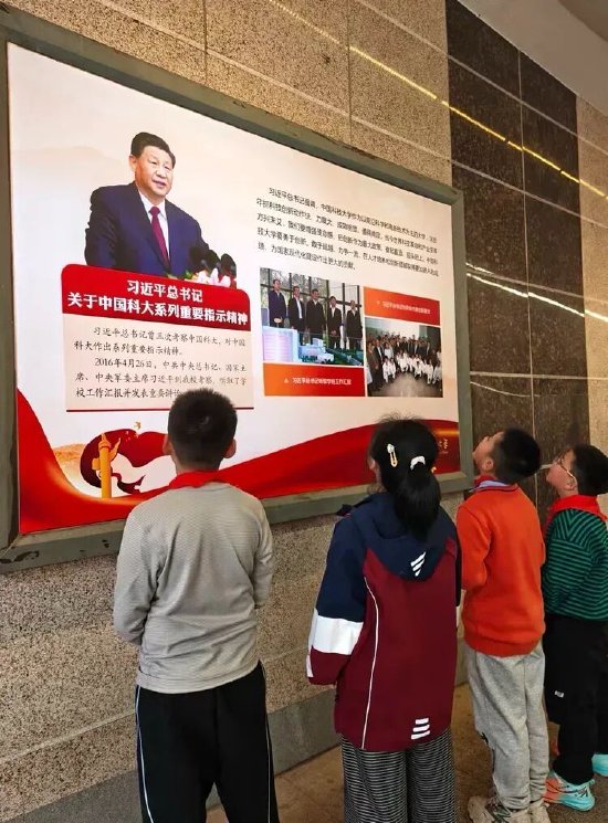 最让孩子们心潮澎湃的,莫过于走进少年班。这里是无数少年英才逐梦的摇篮,是科学梦想启航的地方,一块块牌匾、一段段故事、一面面合作单位墙,都在诉说着少年们勇于探索、追求卓越的精神。少先队员们驻足观看,眼中满是敬佩与向往,纷纷在此打卡留念,与这份“少年强则国强”的精神同框。看着学长们的求学足迹,孩子们心中的科学梦想被悄然点燃,暗暗立下志向:要以少年英才为榜样,勤奋学习、刻苦钻研,长大后也能勇攀科学高峰,为祖国的科技发展贡献力量。